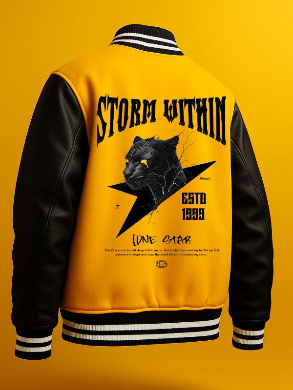STORM WITHIN Yellow Varsity Jacket – Panther Lone Star EditionSTORM WITHIN Yellow Varsity Jacket – Panther Lone Star Edition